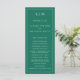 Programa de Bodas Modernas con un diseño sencillo y elegante con un diseño tradicional. Su monograma de dos letras está en la parte superior junto con sus detalles rodeados de un borde delgado. Todos los elementos de diseño son blancos sobre un fondo verde esmeralda de tono de joyería y pueden cambiarse en la herramienta de edición de diseño. Un diseño minimalista con un toque clásico, ideal para un boda formal.