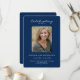 Una elegante orden fotográfica personalizada del programa de funeral de servicio. El diseño presenta una plantilla de fotos simple con tipografía blanca moderna clásica sobre un fondo azul. Texto y foto fáciles de personalizar. Nuestras más sinceras condolencias a usted y a su familia por su pérdida.