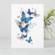 Morfo de las mariposas azules voladoras y mariposas blancas en un fondo abstracto y claro. Morfo. Diseño con morfo de mariposas azules.