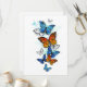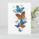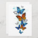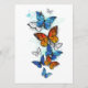 Morfo de mariposa volador, brillante, azul y monarca naranja sobre un fondo blanco. Morfo. Mariposa monarca. Diseño con mariposas.