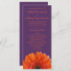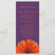Puedes personalizar todo el texto en esta flor gerbera naranja daisy (gerber daisy), programas de boda personalizados de fondo morado y asequibles. El diseño presenta una margarita naranja alegre y luminosa sobre un fondo violeta. Diseño floral sencillo y elegante. NOTA: Se trata de un diseño plano impreso sin ningún tipo de embellecimiento en relieve o en 3D. Para cambiar el texto, utilice las opciones de personalización. O, para cambios más extensos (fuente, tamaño de fuente, color de fuente, ubicación de texto), elija personalizar. Incluso puede cambiar el color de fondo morado que desee. Este es un gran programa de bodas barato para un boda en primavera, verano o otoño / otoño o un boda con un tema de flores de margarita gerbera naranja.