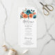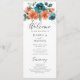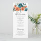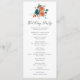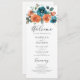 Programa de Boda de Acuarela Rústica Floral Naranja Rust verde azulado. Verde azulado y quemado programa de bodas florales naranjas con hermosas flores de acuarela pintadas a mano, hojas de palma y ramos de pampas con escritura moderna de caligrafía. Perfecto para bodas rústicos de verano y otoño. Elementos coincidentes disponibles.