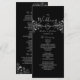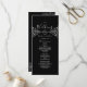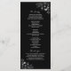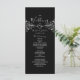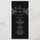Programa de boda negro y blanco, elegante y moderno, con corazón de cuerda plateada y encaje floral vintage dorado.