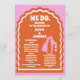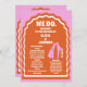 Nuestro programa mínimo, audaz y retro estilo boda de orden de servicio es perfecto para la pareja de moda a la que le encanta destacar y hacer una declaración audaz. Nuestro diseño presenta una combinación de colores llamativa y color rosa-naranja. Las formas simples y abstractas de arco ondulado y de círculo crean un aspecto audaz con "We Do". Se muestra audazmente en el gran tipo de letra blanco. En el reverso se presenta un diseño moderno y sencillo, con un monograma audaz y una dirección web boda de pareja opcional