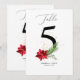 El diseño de los números de las tablas de verdor de las fiestas temáticas incluye botánicos de acuarela pintados a mano y un poinsettia rojo bonito. El diseño es moderno y sencillo, con un fondo blanco resplandeciente y acentuado con unas precipicios de oro a juego. #Navidades #Holidays #HolidayParty