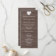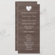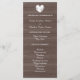 Vintage moda de campo de grano de madera marrón oscuro modelo de programa de bodas. Diseño de estilo Shabby con romántico corazón rústico y tipografía de escritura elegante. Fondo del panel de madera del granero con texto blanco. Personalizar qué debe estar en su programa. Papelería de moda para matrimonio para novios. Incluya nombres, fecha, lugar, orden de la ceremonia y fiesta de boda. Parte de la hermosa colección de temas a juego con accesorios de novia y más.