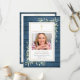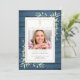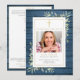 Un programa conmemorativo de funeral cristiano personalizado con vegetación sobre un fondo de paneles de madera azul rústicos. Diseñado por Thisisnotme©