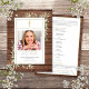 Un programa de funeral memorial personalizado cristiano que presenta vegetación sobre un fondo de paneles de madera rústicos. Diseñado por Thisisnotme©