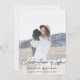 Moderno y minimalista programa funerario de orden fotográfico del servicio para celebrar la vida de tu ser querido en un minimalista y simple estilo de diseño con un informal tipo de letra manuscrita escrita a mano y un suave fondo gris de paloma. El programa puede ser fácilmente personalizado con su propia foto y texto para crear un tributo especial para el funeral, el memorial o la celebración de la vida de su ser querido. La imagen que se muestra es para fines de ilustracion y sólo se sustituye por la suya. La imagen de marcador de posición muestra a una joven con el pelo rubio ondulado y vestido de gorra y jersey blanco sentado en un jeep dorado en las montañas acurrucando a un adorable perro negro. #funeral #orderofservice