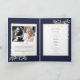 Un elegante programa de plegado botánico personalizado de color agua azul marino y dorado orden de servicio funeral. Diseñado por Thisisnotme©