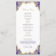 Este programa de bodas muestra un diseño minimalista en oro púrpura y elegante. El frente resalta los nombres de la pareja dentro de un marco dorado refinado con un fondo violeta profundo, dando un aspecto rico y distinguido. La parte trasera presenta los detalles bodas en un formato limpio y moderno con sutiles acentos dorados. El equilibrio del tono real morado con el lujo atemporal del oro crea un programa sofisticado y encantador, perfecto para bodas elegantes y formales.