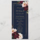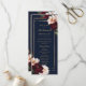 Personalice esta elegante tarjeta de programa delgado de boda de forma fácil y rápida. Simplemente haga clic en el botón Editar usando herramientas de diseño para editar el texto, cambiar el estilo de fuente, el color y el tamaño. Con hermosas flores reales de borgoña y rubia sobre un fondo azul marino oscuro. Personalice esta tarjeta de programa de doble cara con su lista de eventos y fiestas de boda. Elementos coincidentes disponibles en el almacén. c) Somerset Fine Paperie