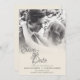 Pareja de bodas de besos en tarjeta Boda monocroma en la que la imagen, la ocasión, los nombres, la ubicación y la fecha se pueden personalizar en la plantilla.