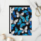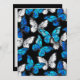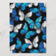 Mariposas realistas, azules y blancas, sin fisuras en el fondo negro.