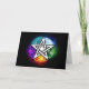 Pentagrama luminoso de dibujo artístico con cinco elementos mágicos, agua, tierra, fuego, astral, aire sobre fondo negro. Pentagrama de Wiccan. Wicca