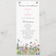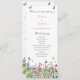 Moderno, bonito y bohemio, este programa de bodas llanas presenta delicadas flores silvestres de verano de colores brillantes con mariposas, abejas y ladybugs. Puede personalizar de todos los detalles del texto y de la ubicación del gráfico a sus necesidades específicas.
