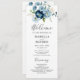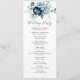 Programa plano de Boda floral azul de la Marina Romántica. Elegante programa de bodas floridas con hermosas flores de acuarela pintadas a mano en azul marino, crema y azul polvoriento con escritura moderna de caligrafía. Elementos coincidentes disponibles.