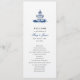 Programa de bodas sencillo y elegante con ilustracion acuarela de una iglesia azul y blanca.