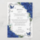 Diseñado para coordinarse con nuestra colección Royal Blue Floral, este elegante menú presenta una acuarela de flores azules reales y mariposas. Personalízalo con su propia redacción y detalles de forma fácil y rápida, simplemente pulse el botón personalizar it para reorganizar y formatear el estilo y la ubicación del texto. Doble cara. Ideal para quinceañera, dulce 16, ducha de bebé, ducha de novia, boda, fiesta de cumpleaños y más ocasiones! Artículos de coordinación disponibles en la tienda Happy Cat Studio Zazzle! c) El estudio Happy Cat Studio