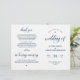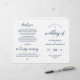 Esta es la tarjeta del programa de la ceremonia de boda plegable, en el elegante tema de escritura azul de la Marina. Está diseñado con acento de desplazamiento que puede ser personalizado con texto personalizado/ personalizado para su fiesta nupcial, detalles de la ceremonia, notas conmemorativas y mensaje de agradecimiento. ** Nota: estos programas de papel de peso de texto llegan planos y requieren plegado para ensamblar.