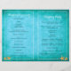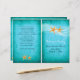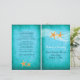 Ceremonia de bodas en la playa de destino tropical con velo de estrella y programa plegado fiesta con un par de estrellas de mar naranja con un velo blanco ondulado sobre fondo turquesa azul y verde azulado manchado de grano. Este moderno diseño de boda acuático forma parte de un conjunto de bodas o de una colección de bodas y es un modelo de personalizable completo perfecto para un boda de verano de playa de destino. Tendrás que doblarlo en el centro. Elija sólo este tipo de valor de papel a medida que se dobla bien.