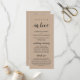 Bienvenidos a nuestra tipografía boda, escritura moderna y rústica elegante en negro, Brown Kraft, tarjeta de programa de ceremonias Bodas. Está diseñado con acento de desplazamiento que puede ser personalizado con texto personalizado/ personalizado para su fiesta nupcial, detalles de la ceremonia, notas conmemorativas y mensaje de agradecimiento. Si está buscando otros tipos y tamaños de tarjetas de programa, busque en nuestra sección de colección de tarjetas de programa correspondiente.