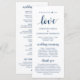 Bienvenido a nuestra tipografía boda, Elegante escritura rústica de la Marina Azul, tarjeta del Programa de Ceremonia Boda. Está diseñado con acento de desplazamiento que puede ser personalizado con texto personalizado/ personalizado para su fiesta nupcial, detalles de la ceremonia, notas conmemorativas y mensaje de agradecimiento. Si está buscando otros tipos y tamaños de tarjetas de programa, busque en nuestra sección de colección de tarjetas de programa correspondiente.
