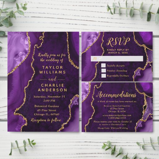 Purple and Gold Agate Marble WeddingDiseñado por Kirsty W