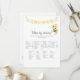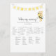 Un juego divertido para el fiesta de revelar sexo es el juego ¿Quién es mi mamá? Este juego tiene un cartel amarillo en la parte superior y un oso de peluche con una abeja. Al revés hay un oso de peluche que se apoya en un barril de miel mirando una abeja con plantillas.