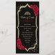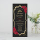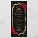 Programa Quinceanera rojo dorado negro. Incluye tipografía de guiones, rosas rojas, tiara y confetti. Diseño elegante con oro falso purpurina. Perfecto para una elegante celebración de glam.