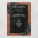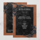 Transportar a sus huéspedes a un mundo de oscuridad y elegancia encantadora con nuestra vintage tarjeta de programa de bodas gótica. El profundo y envejecido fondo de óxido naranja quemado y los rosas negros preparan el terreno para un sorprendente contraste, a medida que el texto blanco negrita emerge de intrincadas cajas de texto negras, lo que añade un toque de encanto dramático. Desate la magia y marca el tono para un día de boda inolvidable. Creado por Simply Farmhouse Press.