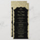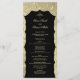 El diseño de este programa de bodas combina sofisticación con elegancia intemporal. En la parte delantera se presentan los nombres de la pareja resaltados dentro de un marco adornado de damasco dorado, colocado sobre un fondo negro profundo. En el reverso, el programa de boda completo se muestra en un panel dorado brillante bordeado por florecientes damascadas a juego. Todas las áreas de texto son totalmente editables, lo que hace que esta tarjeta sea perfecta para celebraciones formales, elegantes y memorables de los bodas.