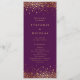 Comparte los detalles de la ceremonia de tu boda con tus invitados con estos programas de bodas de personalizable. Tiene unos puntos falsos de Relieve metalizado dorado con un fondo violeta. Estos falsos programas de boda de Relieve metalizado de oro son perfectos para cualquier tema o temporada de boda. Los elementos coincidentes están disponibles.