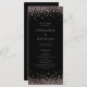 Estos programas de bodas de personalizable presentan falsos puntos de Relieve metalizado de oro rosa sobre un fondo negro. Son perfectas para compartir los detalles de la ceremonia de boda con sus invitados y son perfectas para cualquier tema o temporada de boda. Personalice agregando sus detalles. Los elementos coincidentes están disponibles.
