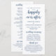 Bienvenido a nuestra tipografía boda, Elegante escritura rústica de la Marina Azul, tarjeta del Programa de Ceremonia Boda. Está diseñado con acento de desplazamiento que puede ser personalizado con texto personalizado/ personalizado para su fiesta nupcial, detalles de la ceremonia, notas conmemorativas y mensaje de agradecimiento. Si está buscando otros tipos y tamaños de tarjetas de programa, busque en nuestra sección de colección de tarjetas de programa correspondiente.