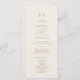Este romántico programa de bodas de oro y marfil es perfecto para un simple boda. El moderno diseño clásico presenta vistosos remolinos y florituras con magnífica y elegante tipografía de oro con imitación de champagne a mano. Incluya las iniciales de las parejas, los nombres de la pareja, la fecha y ubicación del boda, mensaje de agradecimiento, orden de servicio, fiesta de boda y un monumento opcional "en memoria amorosa". Nota: Este diseño no tiene Relieve metalizado oro real. Es un gráfico de alta calidad hecho para parecer un Relieve metalizado dorado.