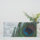 Usa estos románticos programas de bodas de lechón en tu ceremonia de boda. Este diseño de plumas de pavo real en su programa le dará un toque especial a su boda con temática de pavo real. Esta vida residual se tomó con una lente de gran angular para añadir un efecto suave alrededor de los bordes. Los colores de la pluma de pavo real son coloridos.