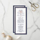 Proporcione a sus huéspedes este elegante diseño de programa de bodas con escritura moderna, texto azul marino, palmera artística y borde de cobre metálico rosa. Personalizar con tus nombres, fecha boda, mensaje de agradecimiento y detalles de la ceremonia. Los nombres de los matrimonios están en la parte de atrás. Un fondo azul marino de coordinación está en la parte delantera y trasera. Póngase en contacto conmigo si necesita ayuda o un pedido de un personalizado.