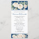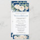 Elegante diseño floral de rosa blanca. Los rosas están enclavados en hojas verdes de salvia. El fondo azul marino los muestra a la perfección. El diseño floral rosa crea un borde superior e inferior en la parte delantera y trasera. Hay mucho espacio para que añadas tus propios detalles del programa de boda. Este programa de bodas es parte de la colección White Rose on Navy. Contiene las plantillas que necesita para personalizar la ceremonia de boda y la recepción. Debería ver un enlace en esta página. Si no ves un enlace o necesitas ayuda con un elemento, por favor contacta conmigo.