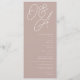 Una hermosa tarjeta de programa de bodas basada en tipografía con sus iniciales en letras de guiones sobredimensionadas en la parte superior, en tono de tonos para un efecto de marca de agua. Personaliza con tus detalles de la ceremonia debajo, y personalizar la parte de atrás con tu fiesta de boda. El colorway Rosa Taupe es una elegante mezcla de rosados neutros tierra, con letras blancas cálidas y clásicas sobre un fondo de color rosa.