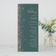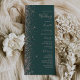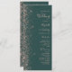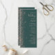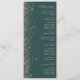 El borde izquierdo de este elegante y moderno programa de bodas cuenta con un diseño purpurina de imitación de oro rosa. El texto del personalizable combina la escritura a mano de color rosa pálido, el copperplate y las letras cursivas en un fondo verde oscuro.