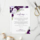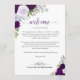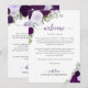 Estas hermosas tarjetas están diseñadas para dar la bienvenida a sus invitados y a los miembros especiales de su boda. El diseño rústico boho chic incluye rosas pintadas a mano con acuarela, hojas de eucalipto y vegetación de jardín en tonos de púrpura, ciruela y lavanda. La parte delantera tiene espacio para un mensaje de bienvenida, y en la parte trasera está el horario o itinerario. Una excelente adición a una bolsa de bienvenida de boda, y una forma maravillosa de agradecer a sus invitados por celebrar con usted.