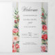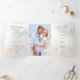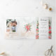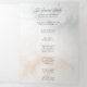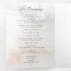 Bonitas columnas de elegantes rosales color agua rosa rubor y follaje verde sobre un sutil fondo de color pastel de agua y etiqueta central con bordes dorados. Incluye gráficos de texto caligráfico en el tipo de letra del guión personalizado (o borrar y personalizar en el editor de diseño) con campos de texto editables para los detalles de la ceremonia y los participantes del boda.