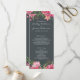 Elegante y moderno programa de bodas floridas de ruby rosado con flores de acuarela pintadas en rosa y melocotón y frondosos follajes verdes, con una moda de fondo negro. Simplemente agregue los detalles de su boda. Si necesita ayuda o productos que coincidan, por favor contáctenos a través de nuestra tienda. ¡Estamos encantados de ayudarle a hacer de su boda el día más hermoso!