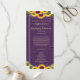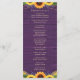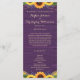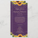 Este rústico diseño rústico, con luces de cuerda dorada y encaje, girasoles y brotes de lavanda en un fondo de madera de púrpura. El texto, con nombres de novias y novios de personalizable y detalles de los eventos, aparece en oro pálido en escritura popular y tipografía de serif. Puede personalizar este programa para su propio boda cambiando el texto de la plantilla.