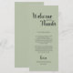 This sage green welcome card with the text Welcome and Thanks brings a gentle and inviting feel to your reception. The soft shade works beautifully with minimalist, rustic and modern weddings, creating a friendly first impression for your guests.