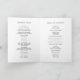 Programa de bodas plegado sencillo con un diseño moderno y elegante. La cubierta tiene su monograma inicial junto con los detalles de su boda en negro sobre un fondo gris claro. El interior tiene tu fiesta de boda en el lado izquierdo y tu orden de ceremonia en el lado derecho. El revés tiene tu mensaje personal de agradecimiento. Todos los colores del elemento de diseño se pueden cambiar en la herramienta de edición de diseño. Una moda y un diseño de diseño, ideal para una pareja minimalista.