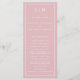 Programa de Bodas Modernas con un diseño sencillo y elegante con un diseño tradicional. Su monograma de dos letras está en la parte superior junto con sus detalles rodeados de un borde delgado. Todos los elementos de diseño son blancos sobre un fondo rosado rosa polvoriento y pueden cambiarse en la herramienta de edición de diseño. Un diseño minimalista con un toque clásico, ideal para un boda formal.