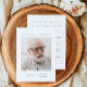 Este elegante diseño de plantilla de programa conmemorativo presenta una disposición refinada e intemporal que combina un suave esquema de color gris neutro y blanco con una tipografía limpia y moderna. La parte frontal se centra en una cálida foto de marco completo de tu ser querido, bordeada por un sutil marco blanco que añade un toque de sofisticación y gracia. El texto "en la memoria amorosa" aparece en letras mayúsculas clásicas, creando un tono pacífico y respetuoso, mientras que el nombre y las fechas de vida se colocan a continuación para un homenaje equilibrado y sincero. La parte trasera ofrece un orden de servicio cuidadosamente estructurado, ofreciendo orientación para una celebración de la vida con secciones de bienvenida, lecturas, elogios y actividades conmemorativas especiales. Ideal para honrar una vida bien vivida, este programa funerario de personalizable completo combina elegancia sobria con calidez emocional.