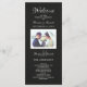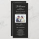 Un hermoso personalizado y personalizado simple pero elegante: negro y blanco con monograma | Programa de Boda Moderna / Programa de Matrimonio Lechado de Mano Moderna para su ceremonia de boda. Reemplace la foto de ejemplo con la suya propia y utilice los campos de plantilla para agregar fácilmente el texto. El menú Personalizar también se puede utilizar para cambiar el color del tipo de letra y el fondo para que se adapte a su esquema de color boda. Moderna y moda, pero elegante y atemporal - se coordina con gusto con tantos de los estilos bodas actuales. Se muestra en un tema en blanco y negro con fondo de tela de lino negro pero se puede personalizar a los colores bodas para el texto y el fondo. Añade cualquier otro gráfico, texto (tamaño, color, posición, fuentes en las herramientas de diseño de edición debajo de todas las plantillas) o monogramas para personalizar esta plantilla.